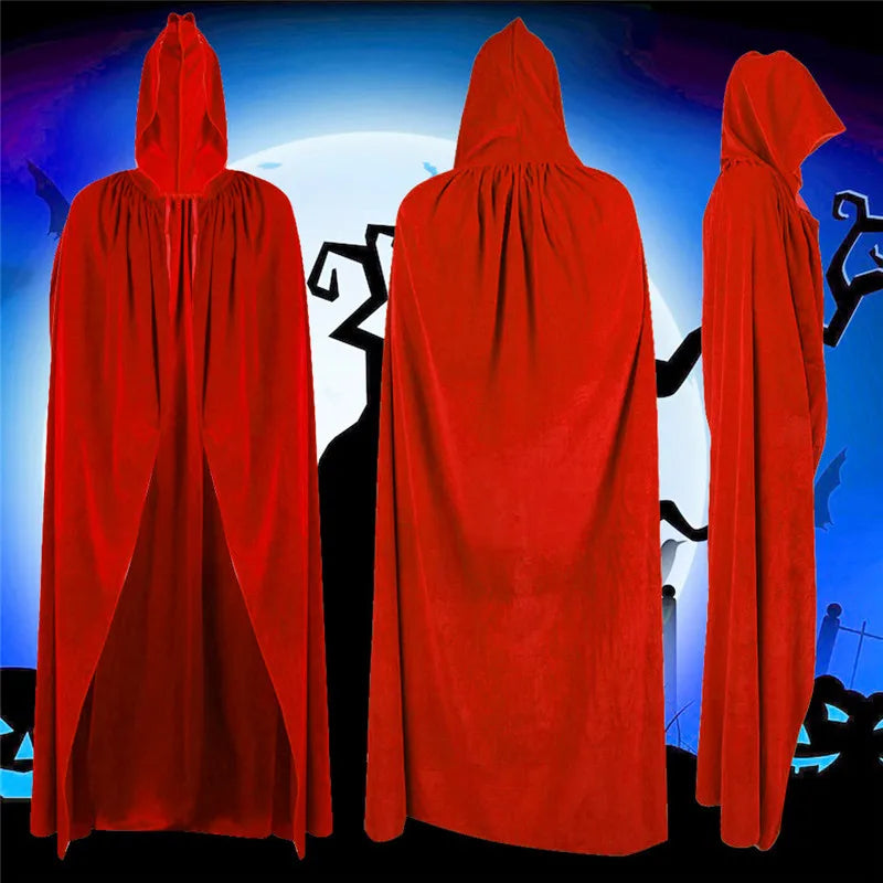 Transform your look with this stunning red velvet hooded cloak. Designed to flow beautifully to the floor, this cape is perfect for Halloween parties, cosplay events, gothic weddings, or theatrical performances. Made from soft and warm velvet, it combines comfort and style in one eye-catching piece.